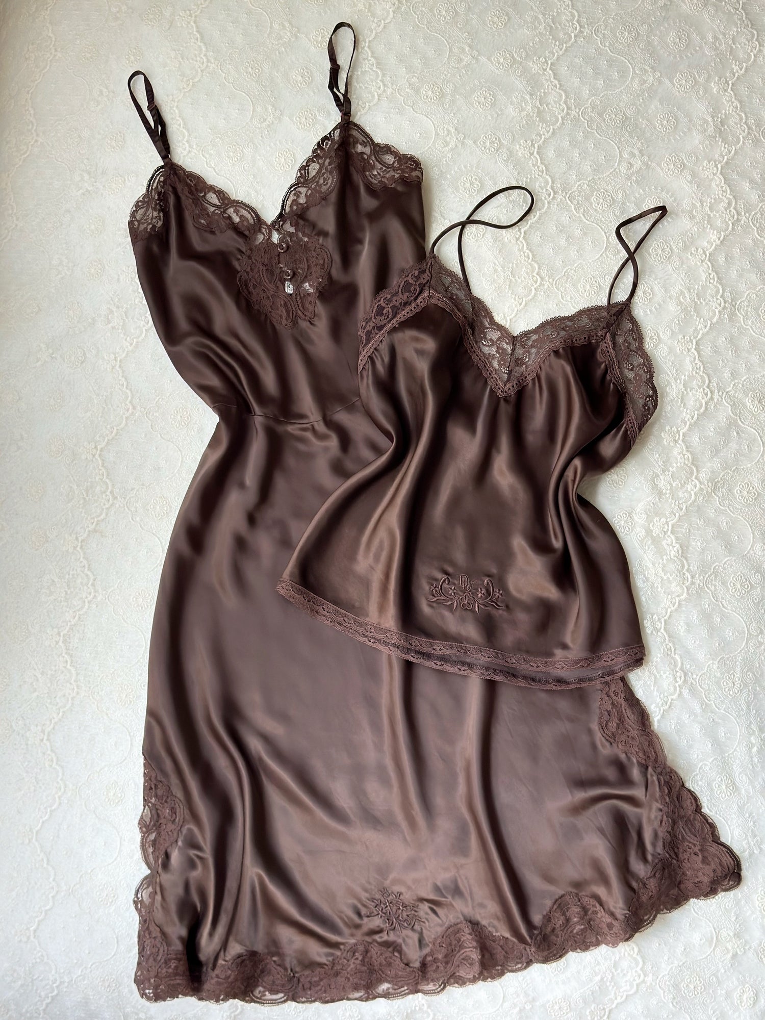 Romantic fall pieces in warm mocha hues & deep Bordeaux tones.Delicate lace,...