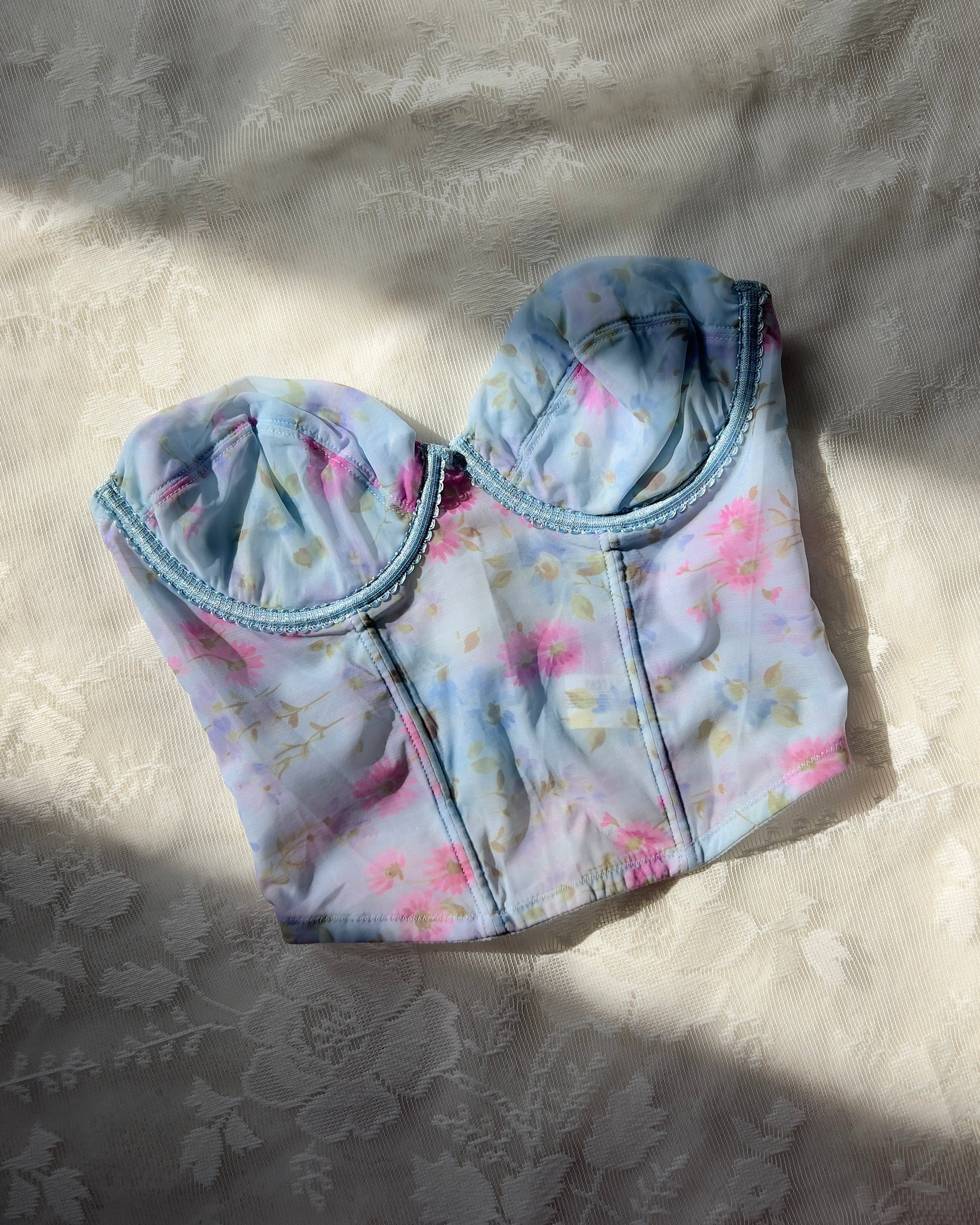 Adorable Spring Washed Floral Corset in Sheer Blue