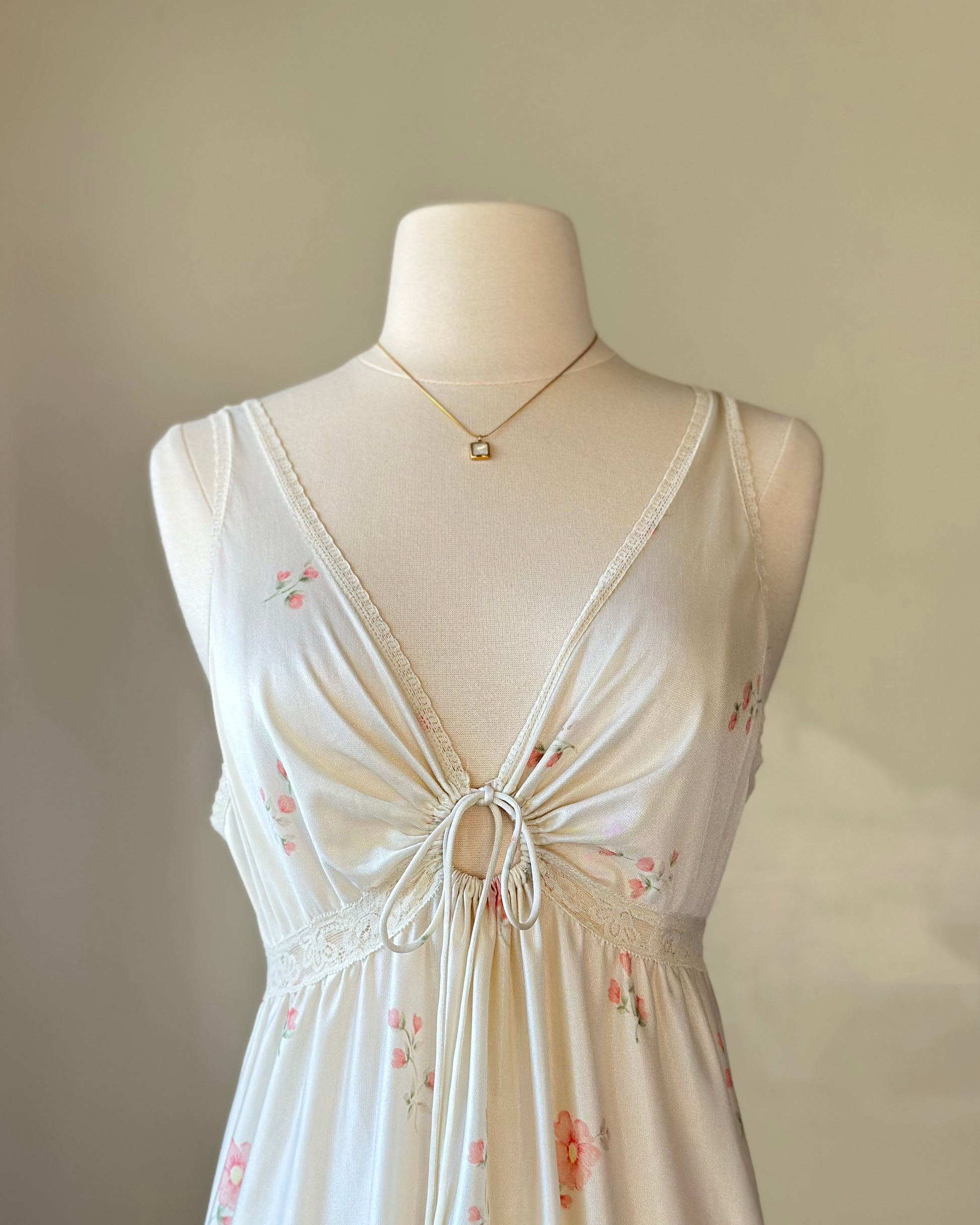 - Beautifulpearl white maxi dress featuring peonies prints with plunge neckline and keyhole cutout