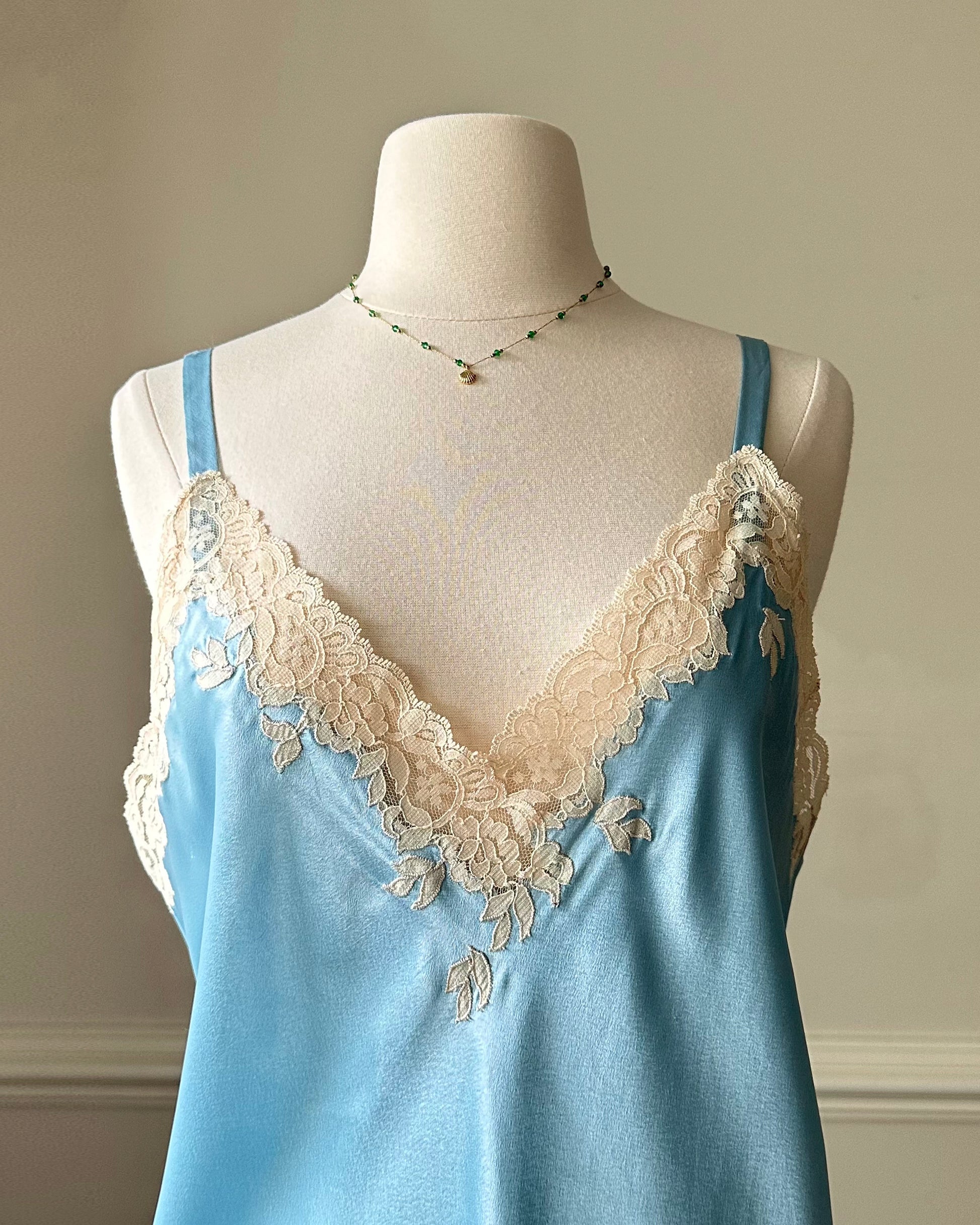 Ethereal sky blue satin maxi dress featuring rosettes embroidery bust