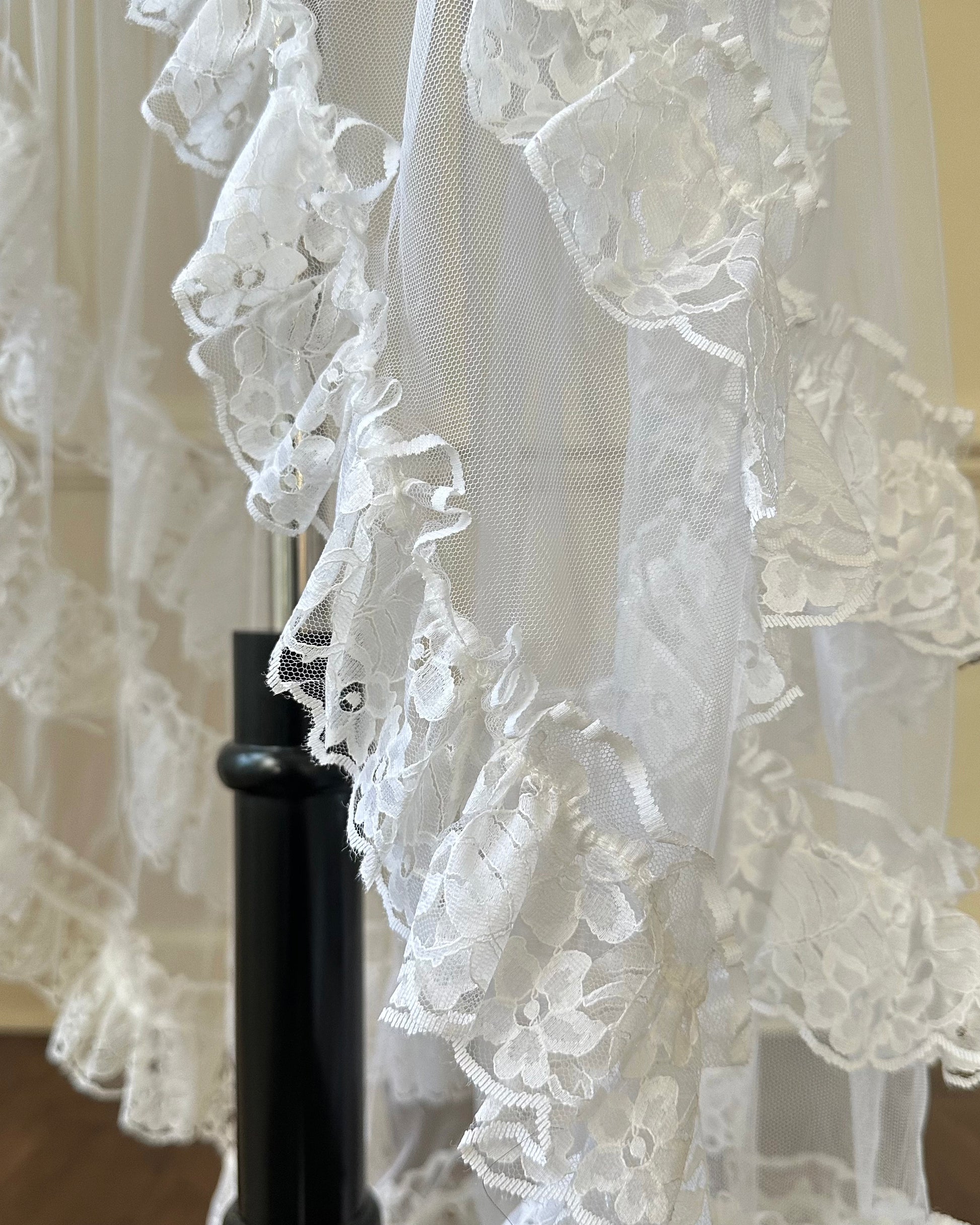 - Frederick’s stunning bridal-inspired sheer slip dress featuring crimson red velvet bustier patch detail with tiered open-front ruffled skirt and embroidery bodice