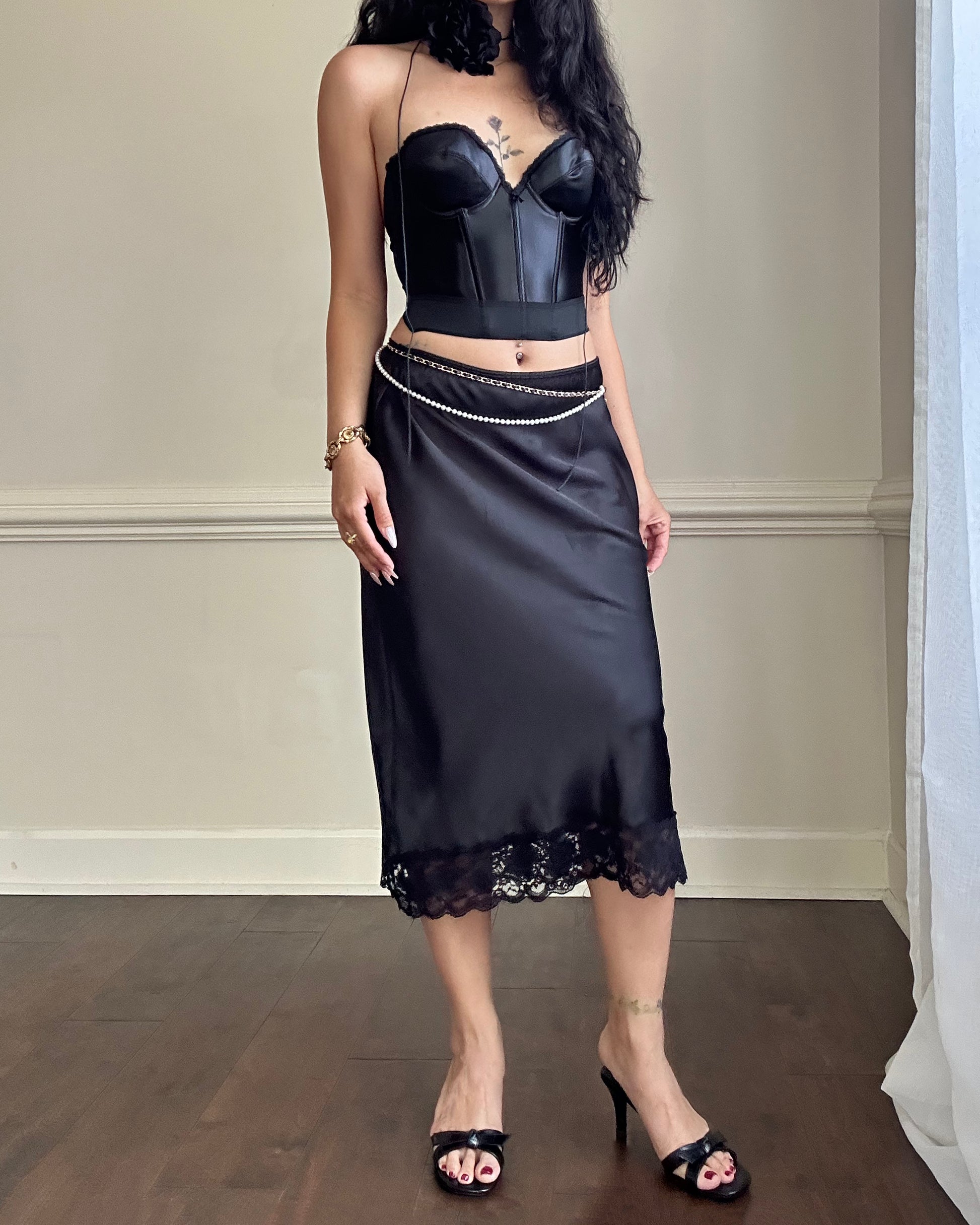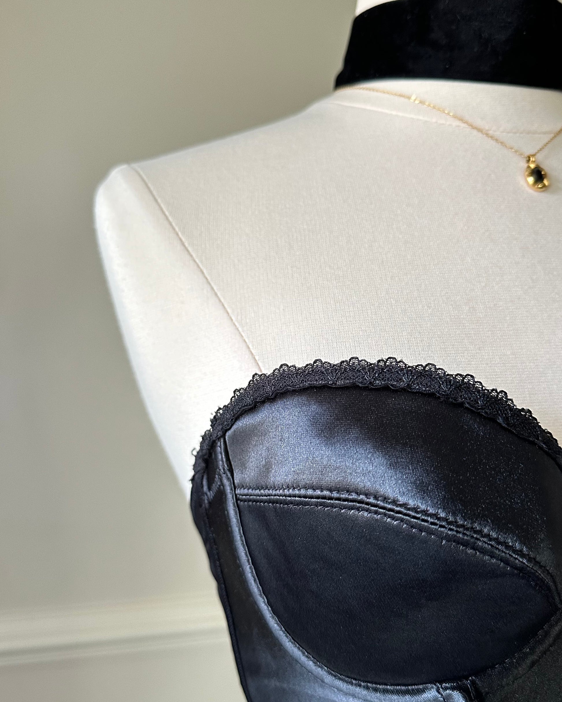 - hook-and-eye closure; lace bustier trimmings