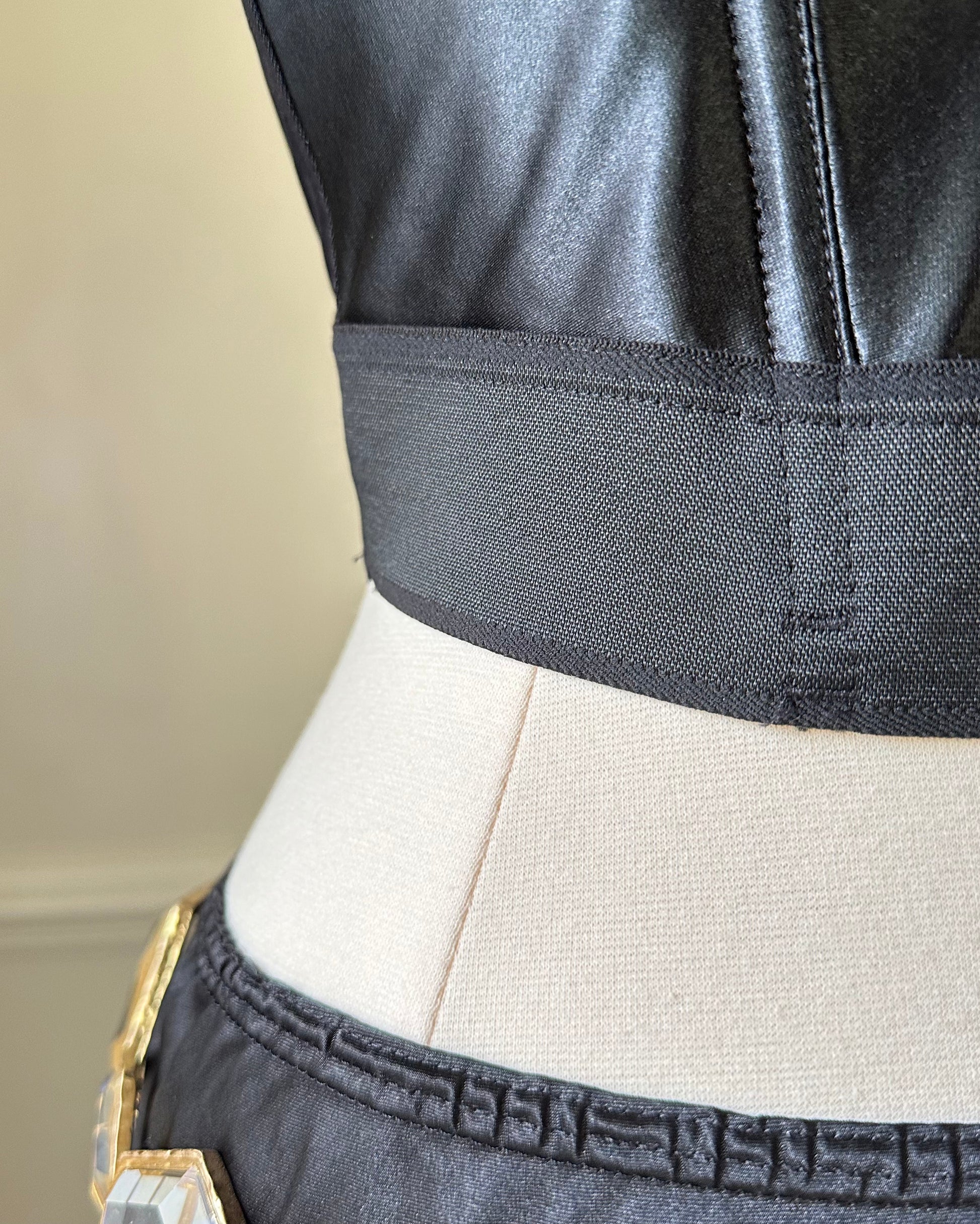 - RARE Victoria’s Secret faux leather strapless bustier corset with defined frame bone and stretchable waist band