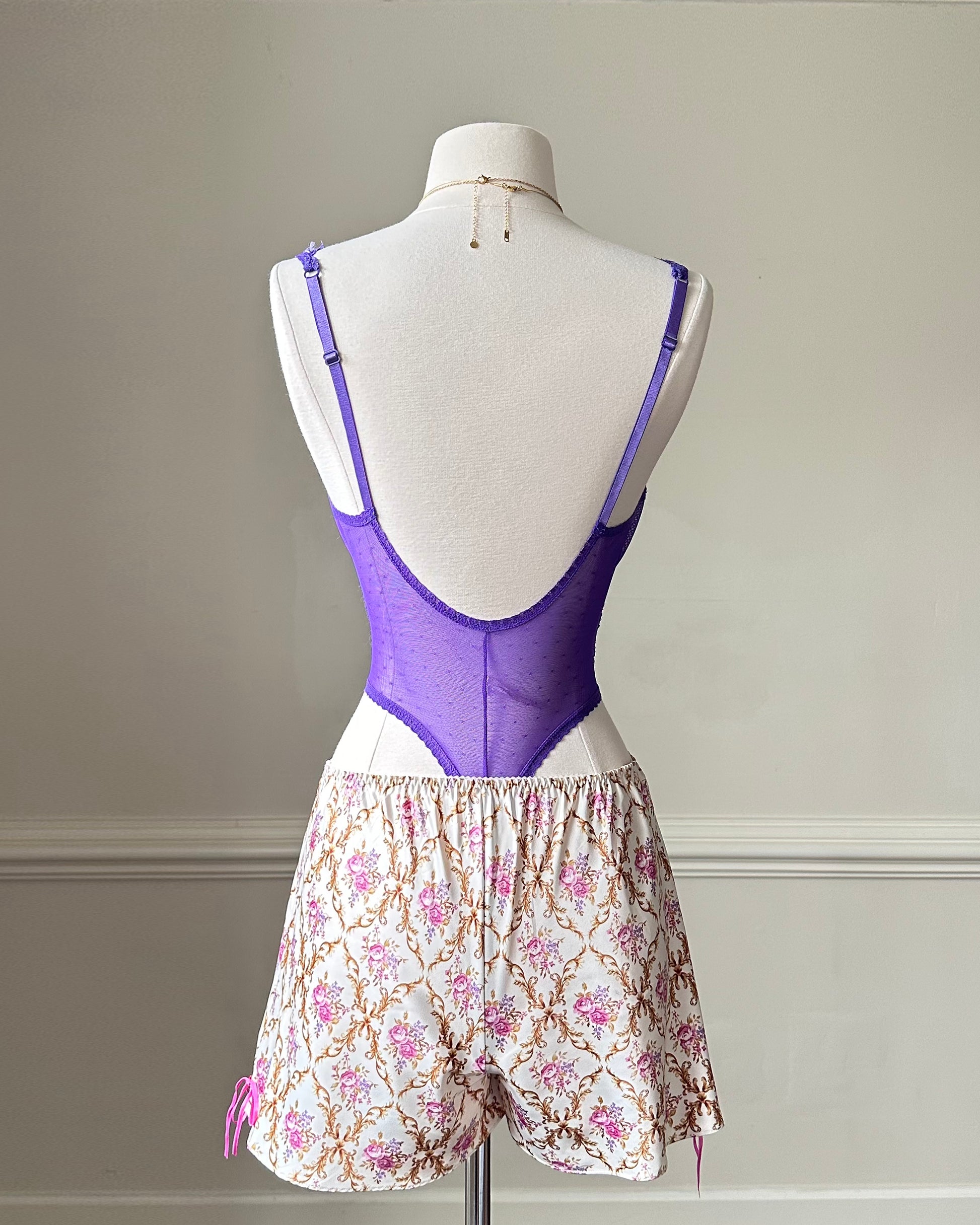 Satin Short featuring Brocade Pattern with Lace Trimmings