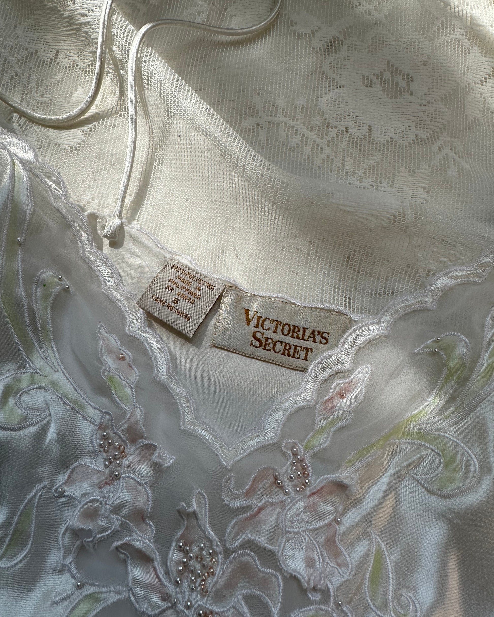 Victoria’s Secret Mermaid Satin Maxi Dress featuring Floral Embroidery Bust Detail