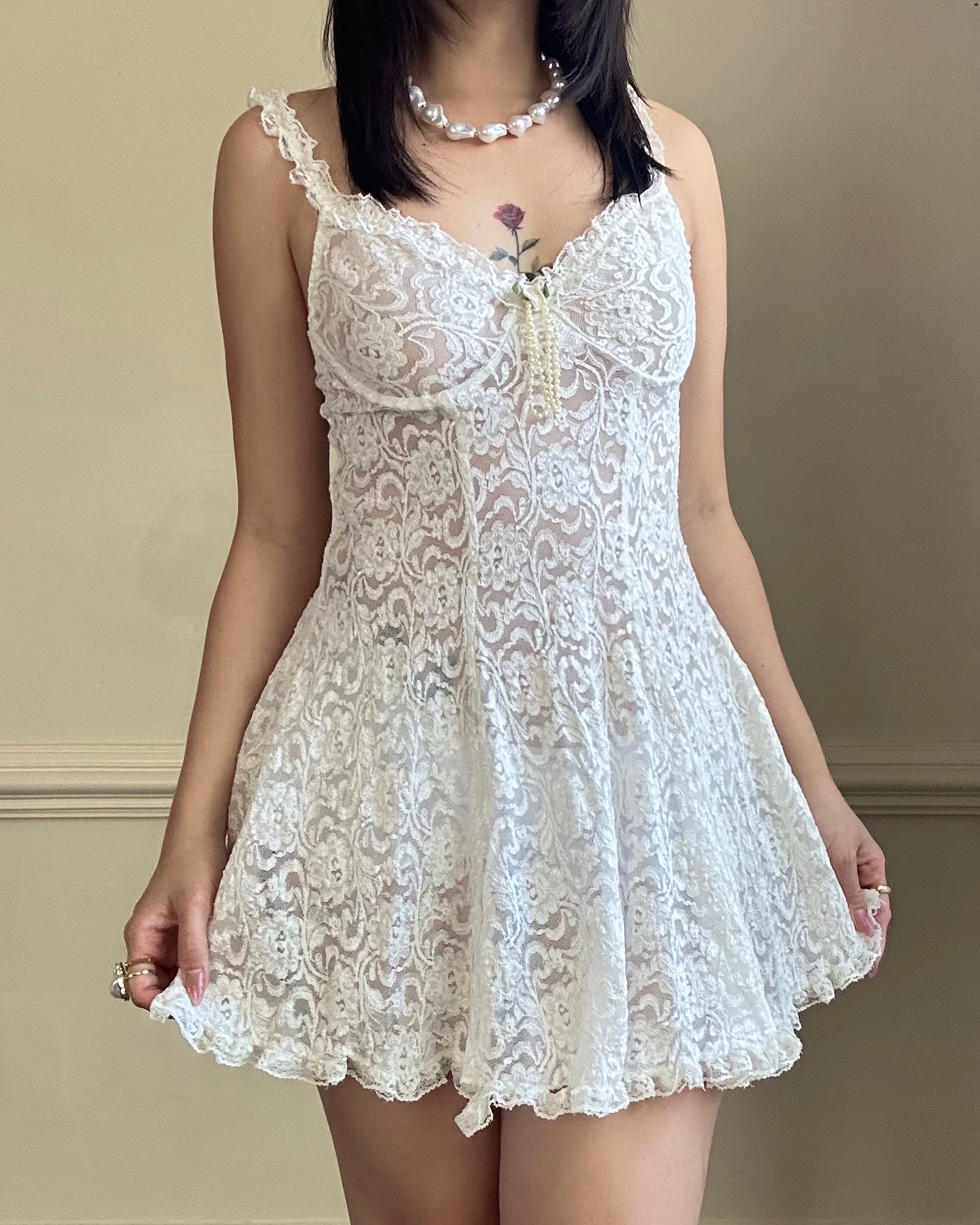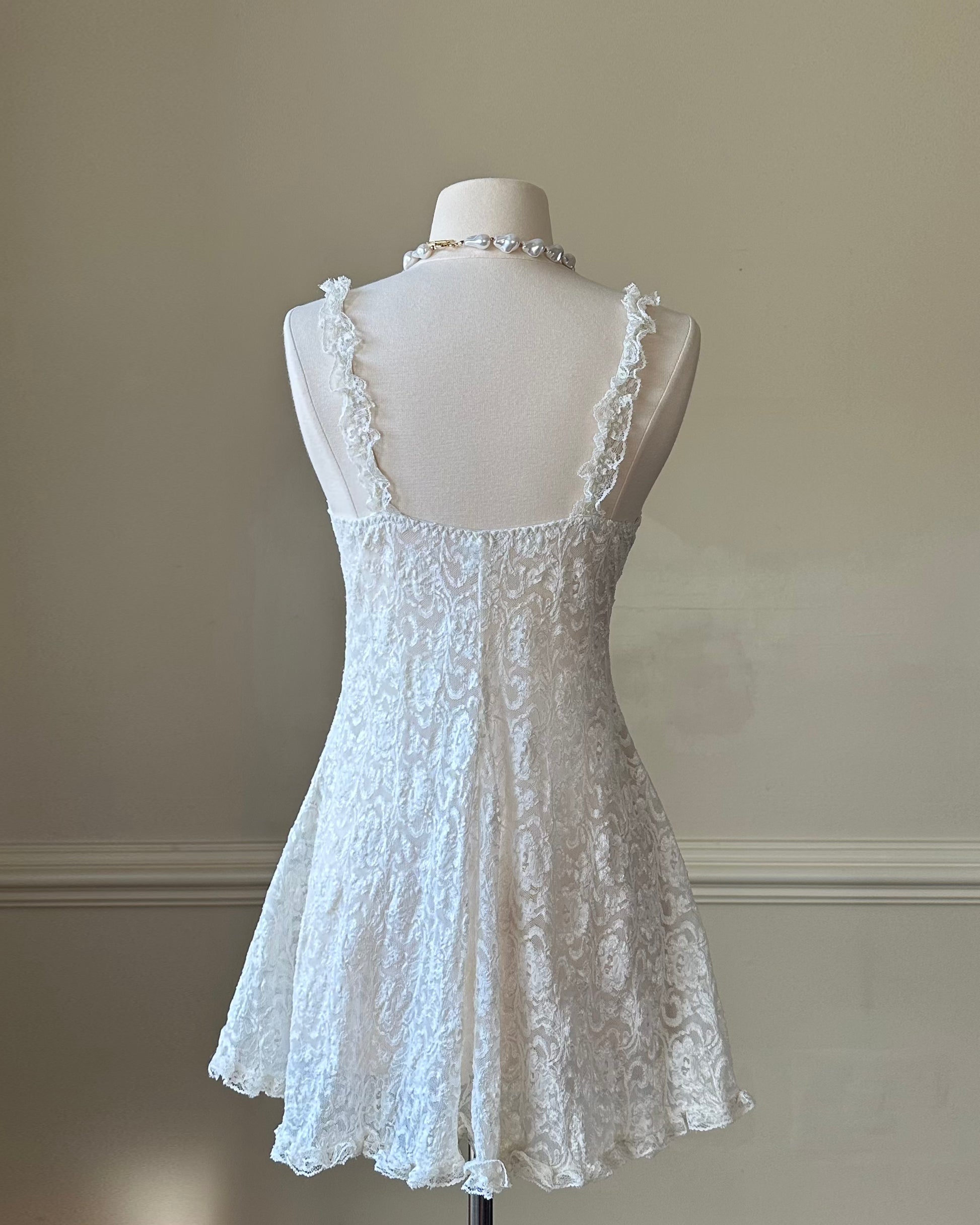 Vintage ivory lace slip dress with a romantic allover floral pattern