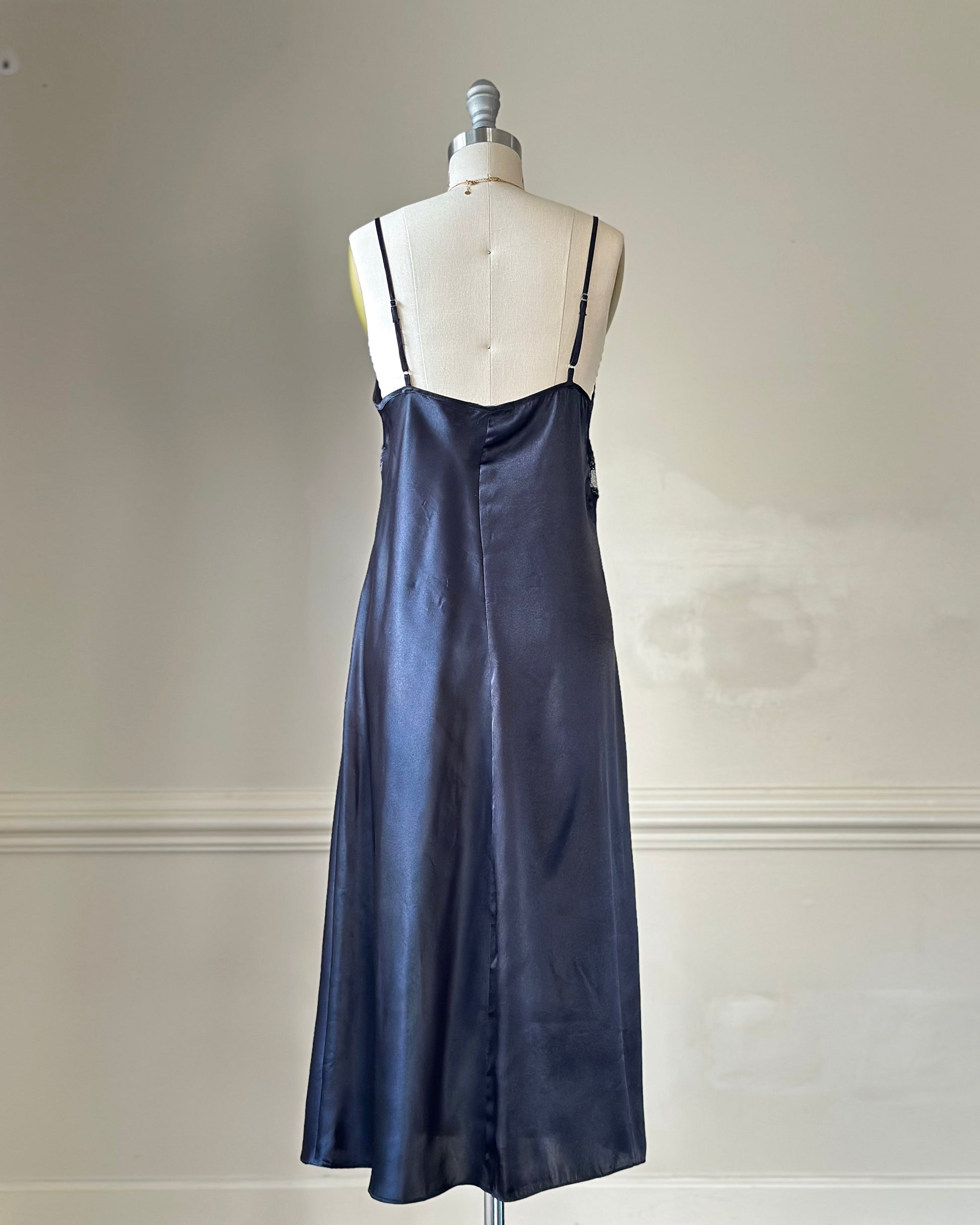 – Adjustable straps and bias-cut silhouette for a graceful drape