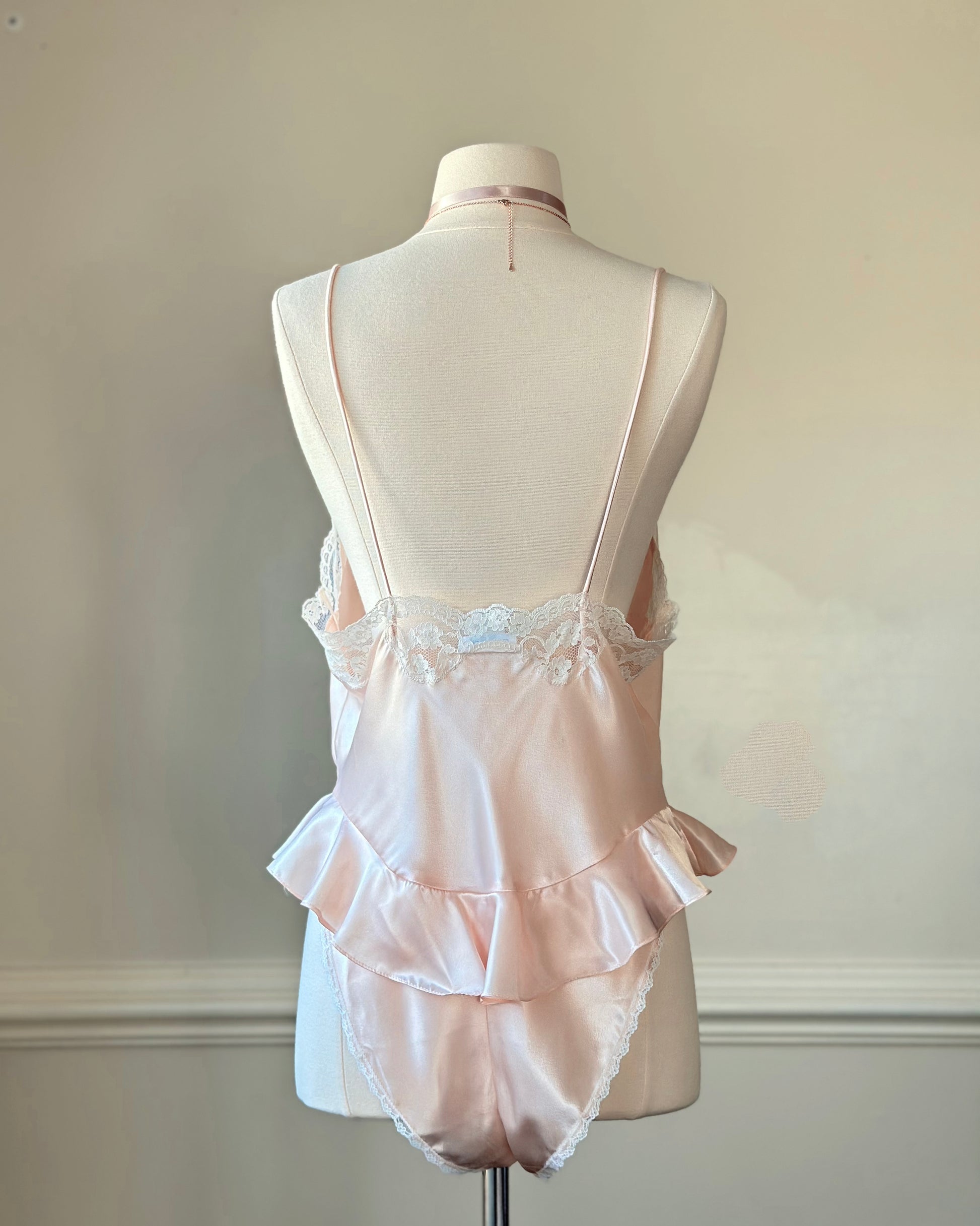 - Vintage Sara Beth’s victorian inspired satin bodysuit in blush pink