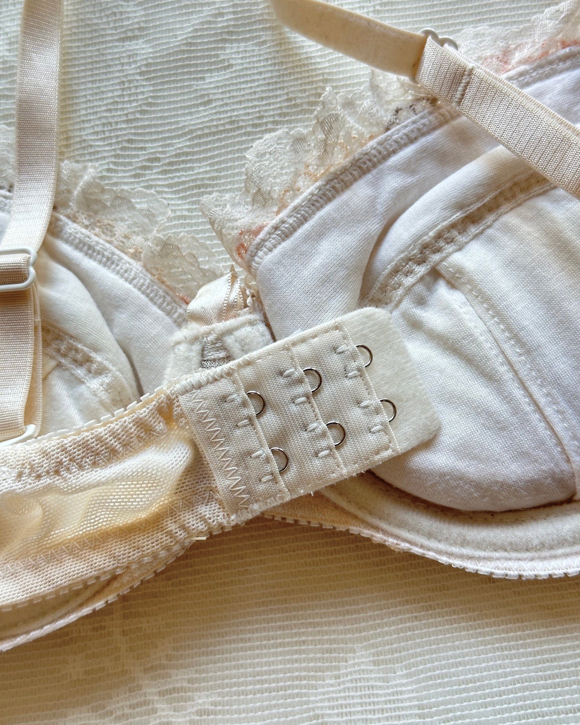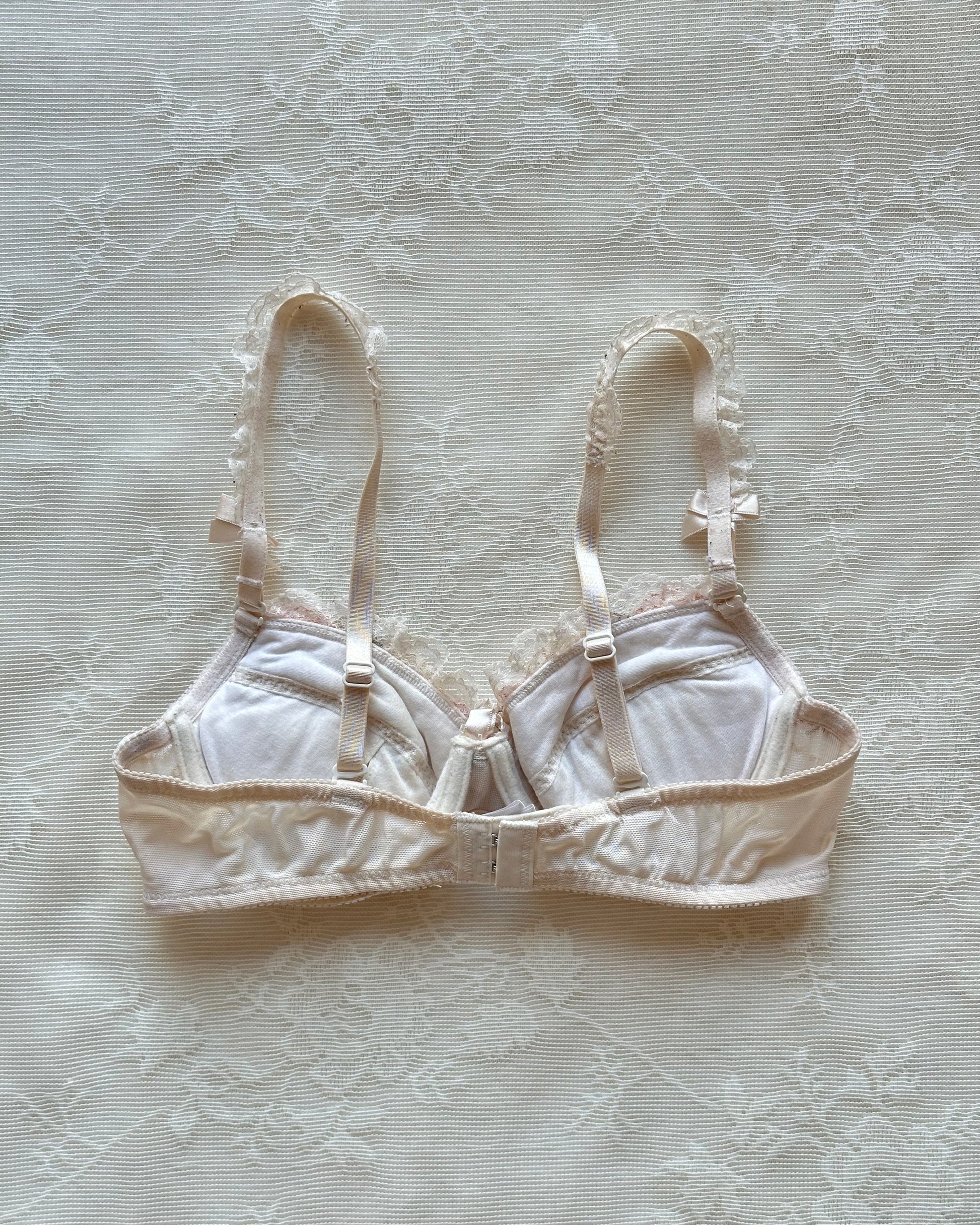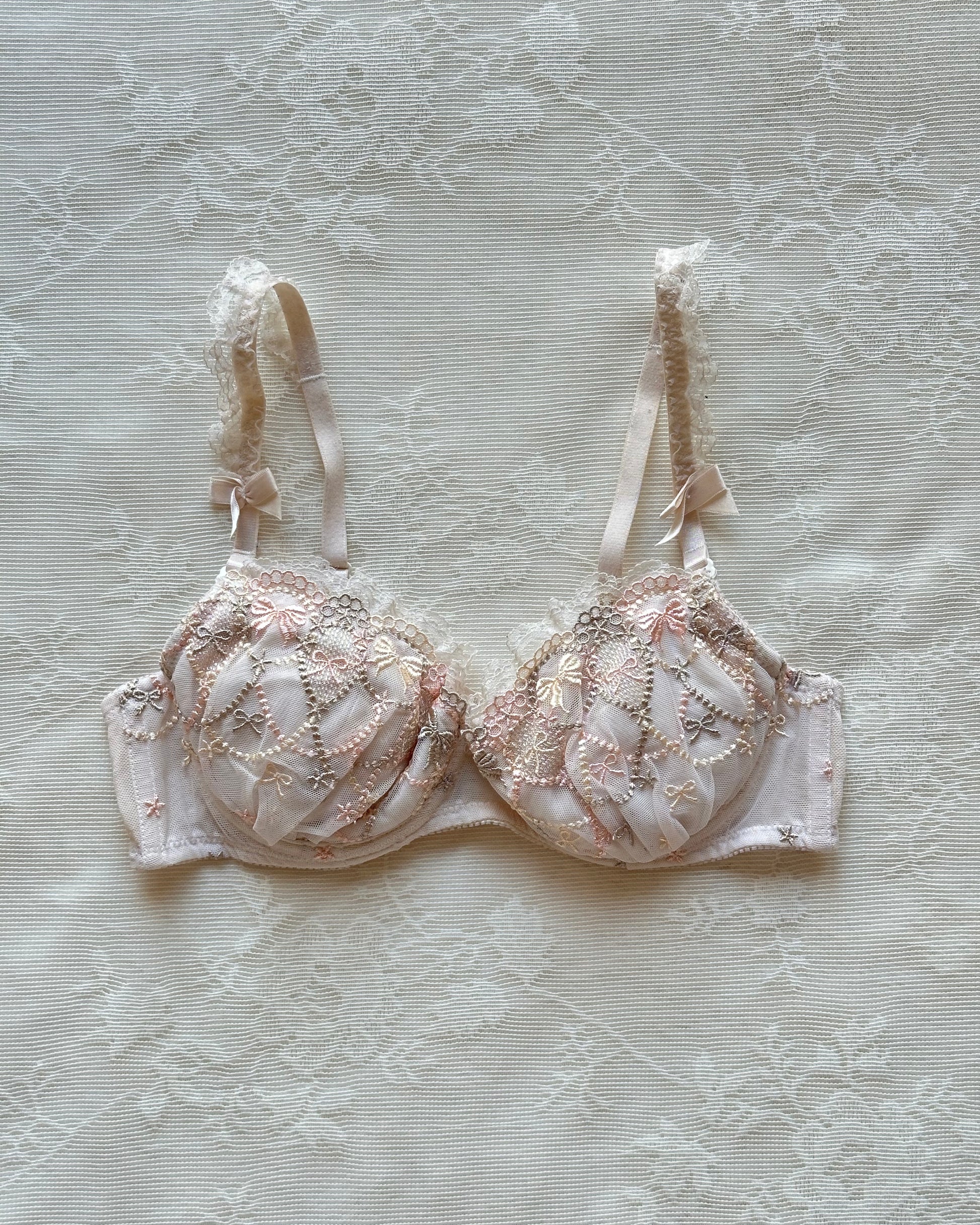 Vintage white Japanese brassiere featuring adorable bows embroidery